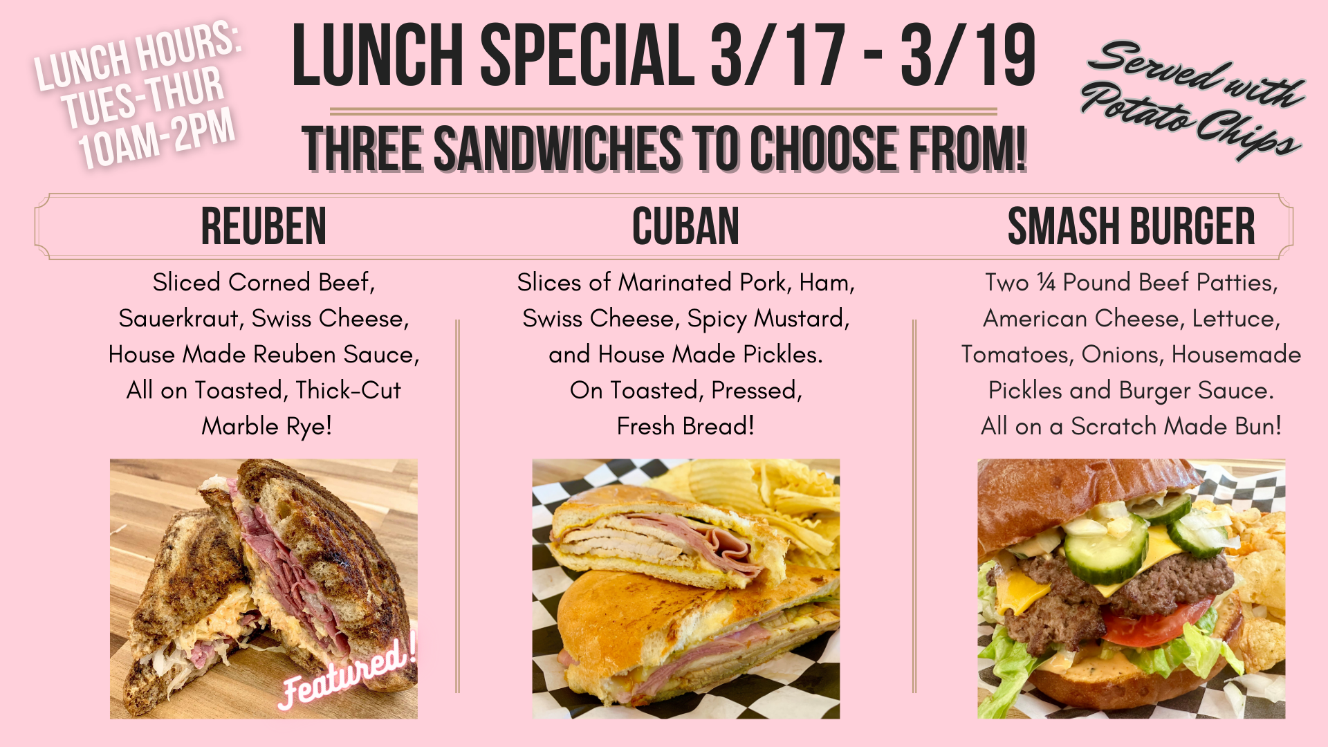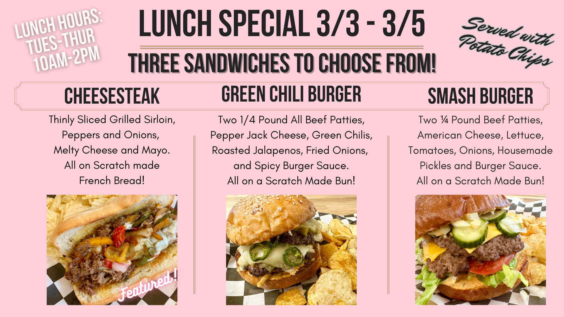 Lunch Served: Tuesday-Thursday 10AM-2PM